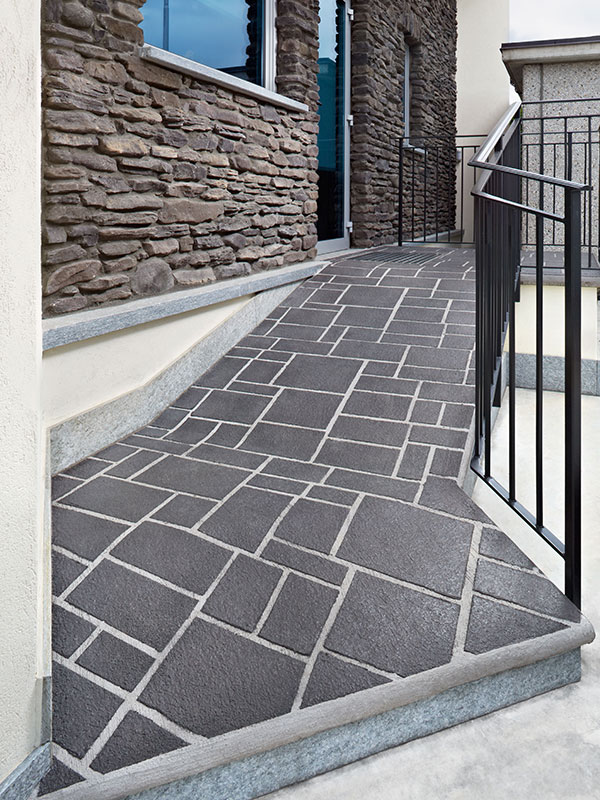 Powierzchnia monolityczna imitująca skały, kostkę brukową czy deski. Świetnie dopełniająca wystrój ogrodu i domu z zewnątrz. Odporna na ścieranie i ruch samochodów z pewnością sprawdzi się na wszelkich podjazdach i chodnikach.